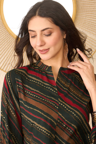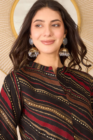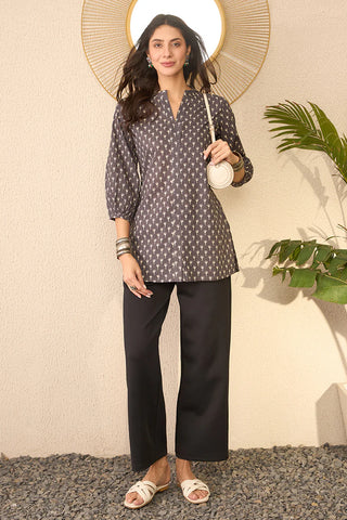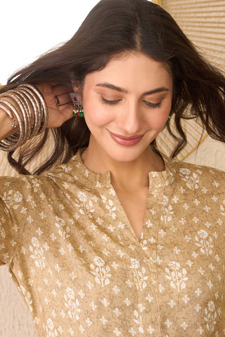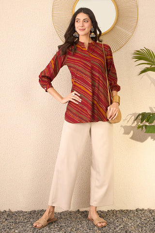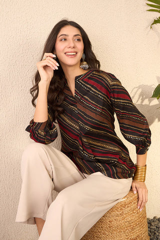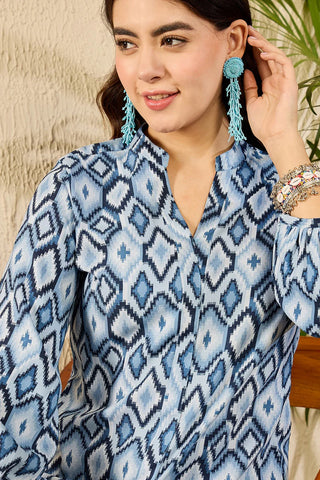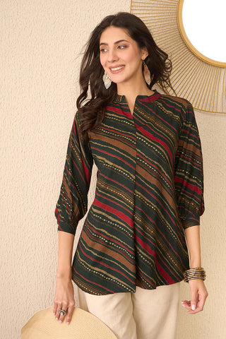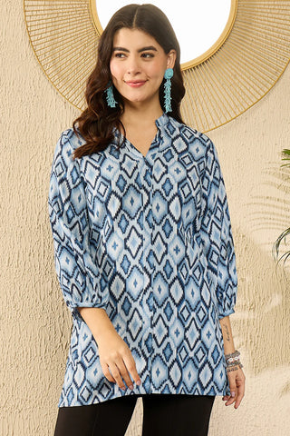 Brown and Blue Cotton Printed Sleeveless Crop Top
