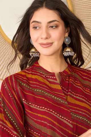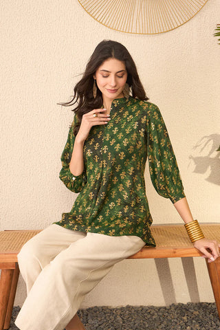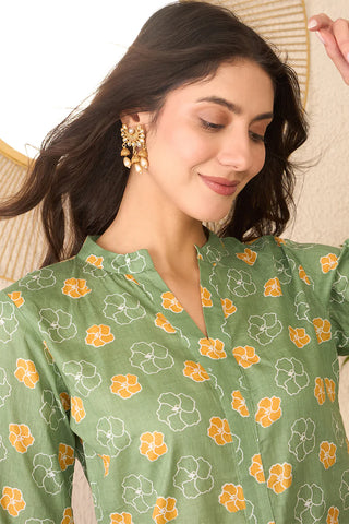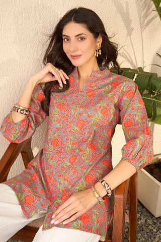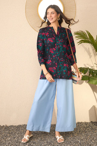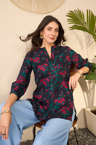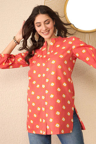 Pink Cotton Floral Print Horizontal Print Style Shirt