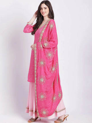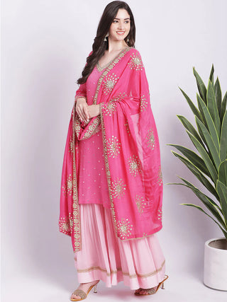 Brocade Peach Embroidered Kurta with Chinon Sharara and a Net Dupatta