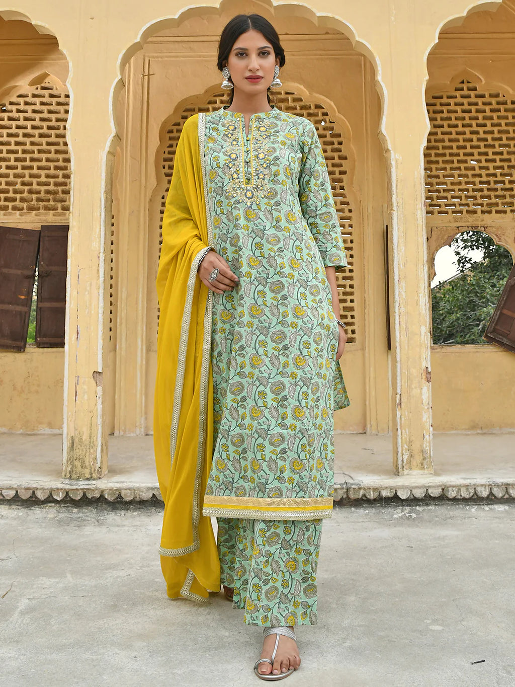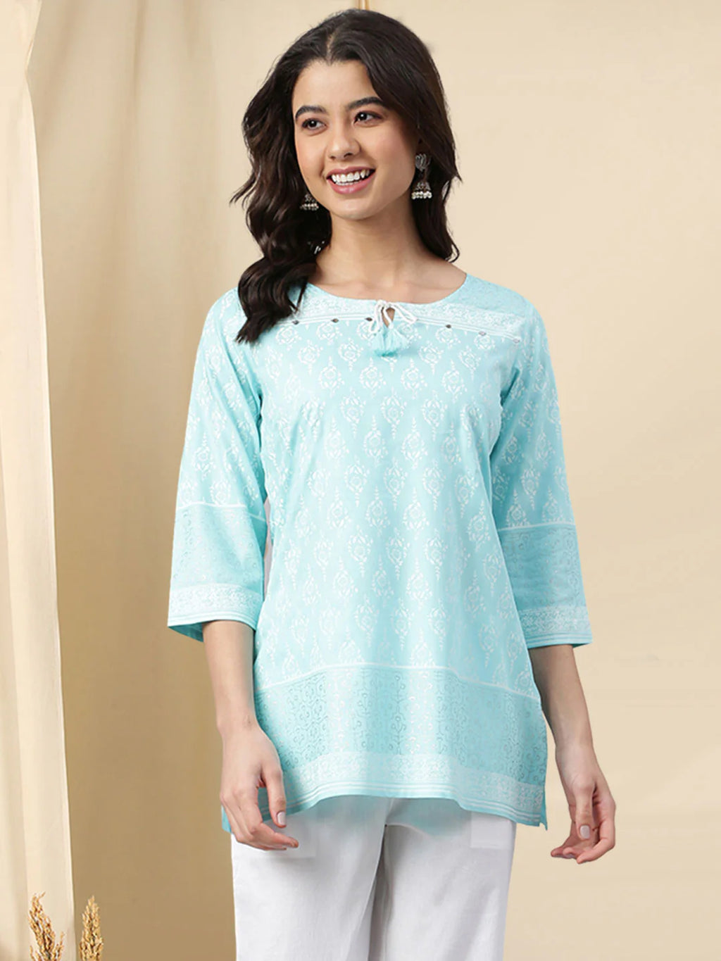 Blue Pure Cotton Printed Straight Shape Kurta Bottom Set
