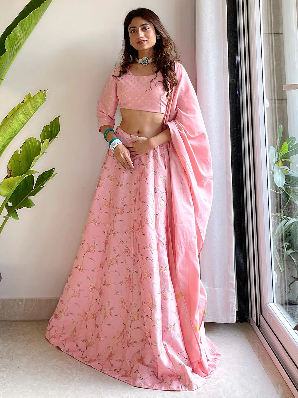Pink Silk Blend Floral Embroidered Kurta Bottom Set
