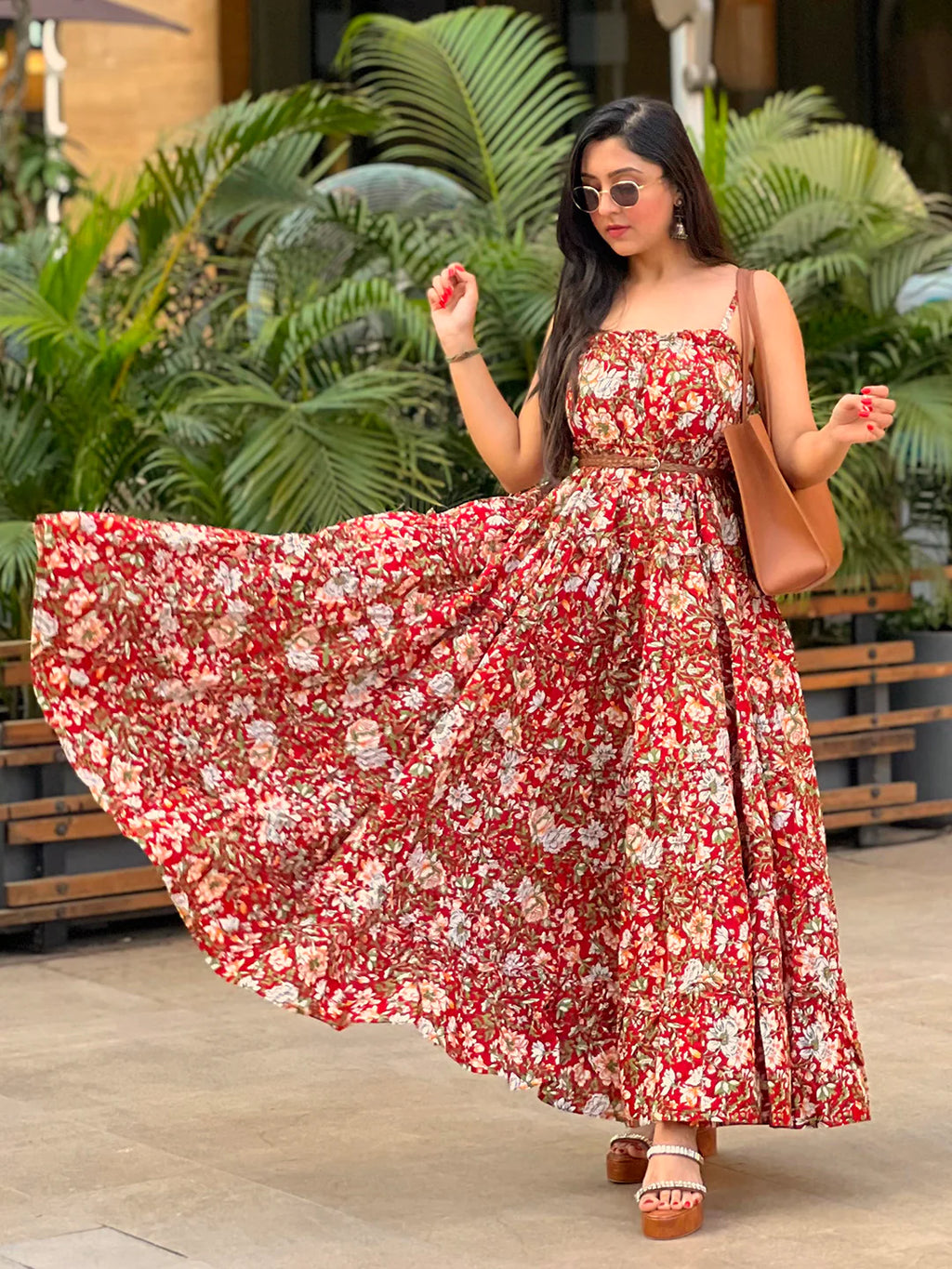Maroon Pure Cotton Floral Print A-Line Kurta Bottom Set