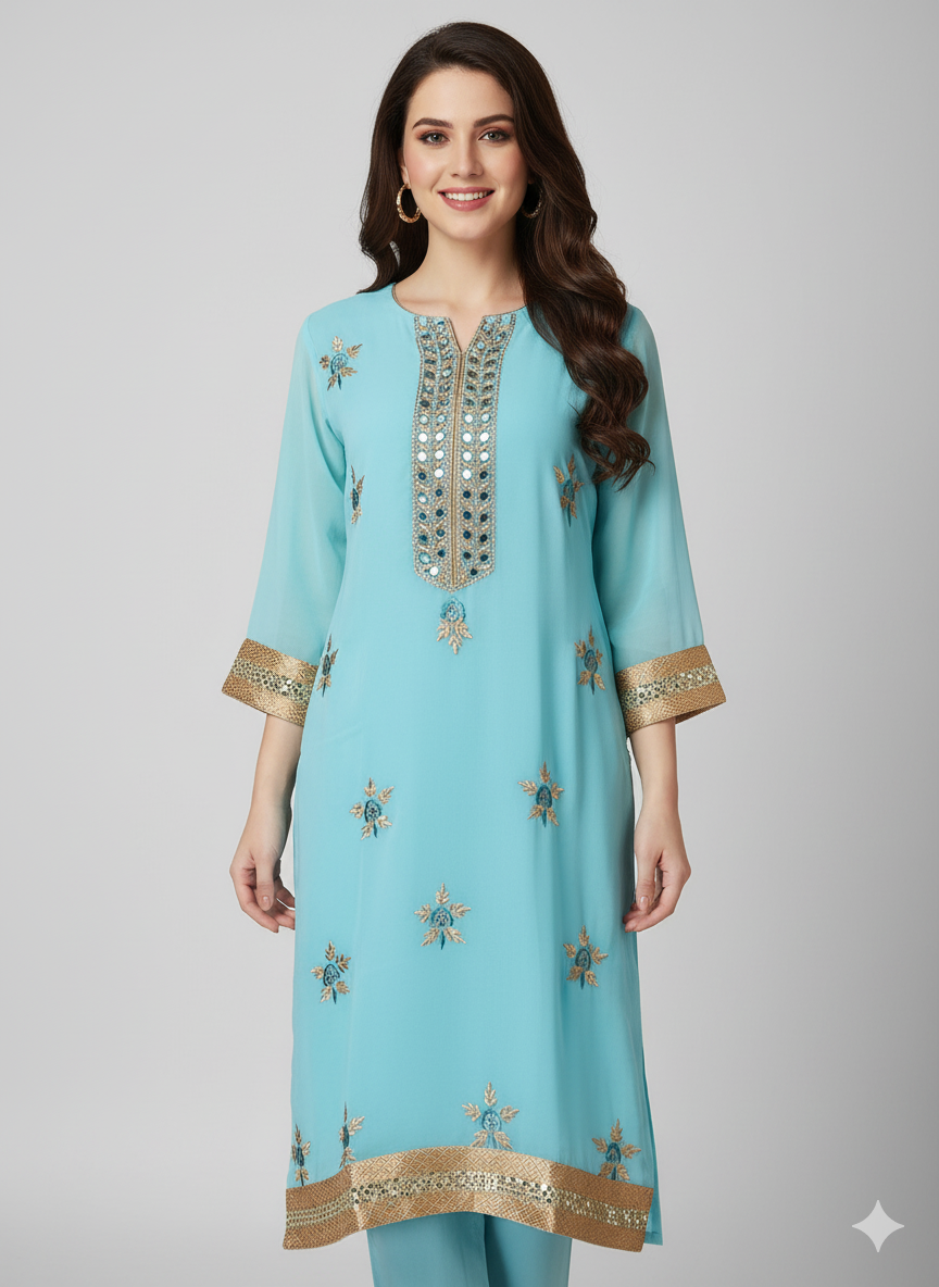 Sky Blue Georgette Kurti/Tunic | Tunic kurti online – Ria Fashions