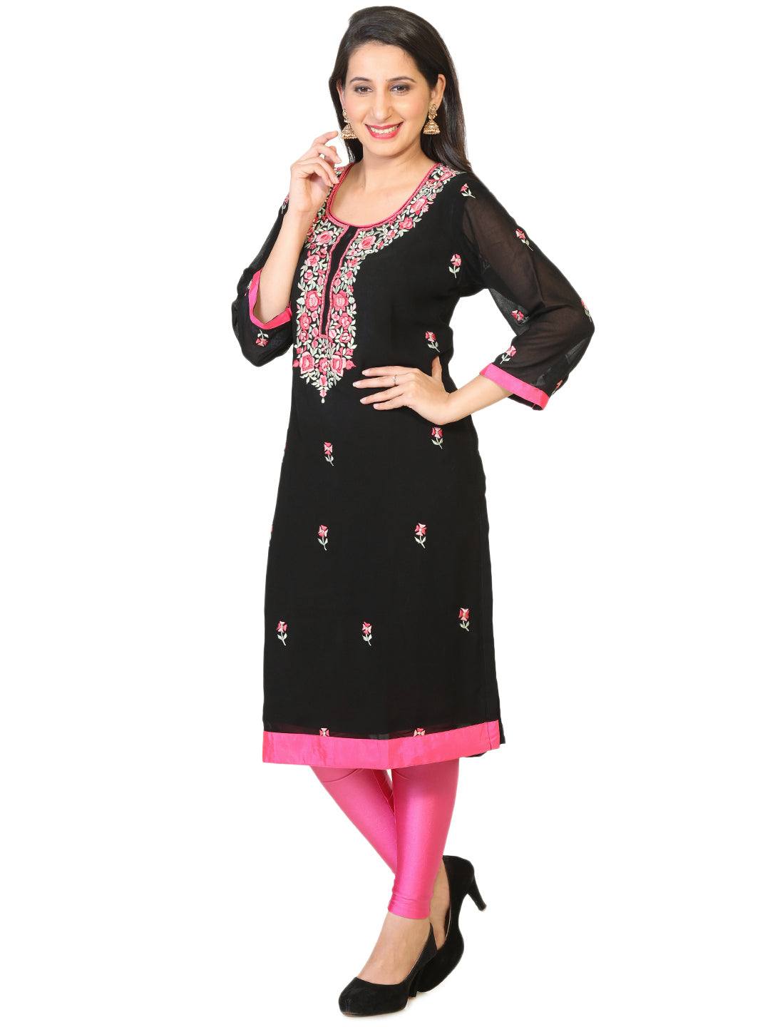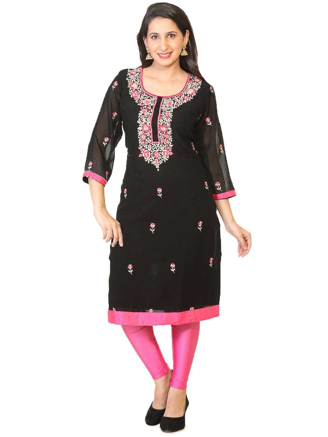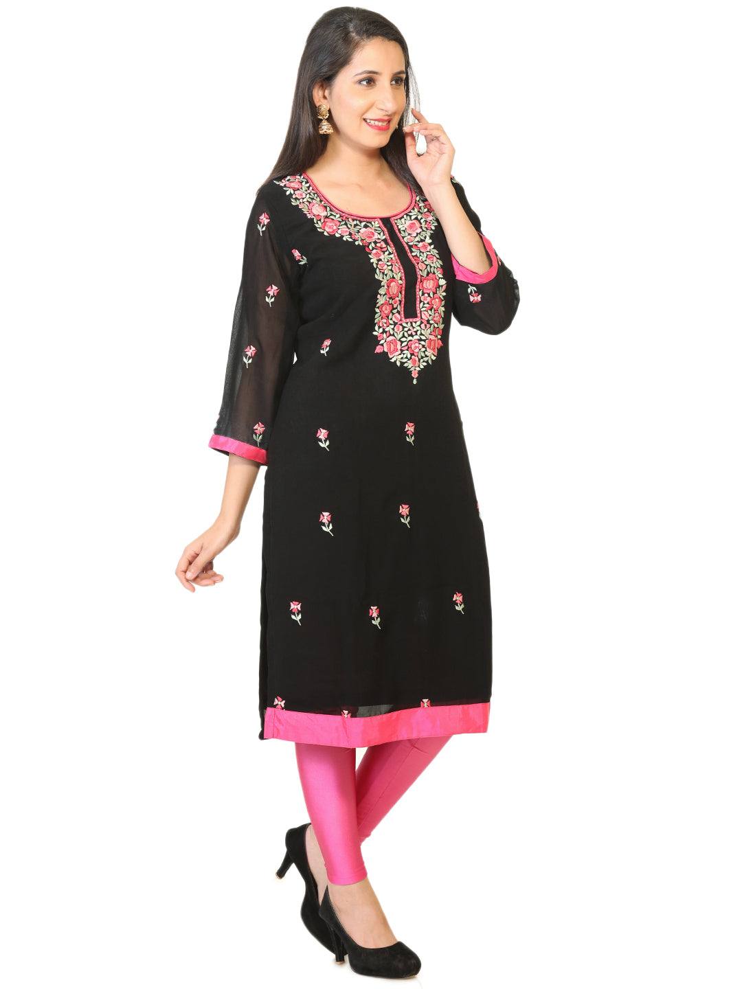 Black Embroidered Georgette Party Wear Tunic / Kurti | Tunic kurti online – Ria Fashions