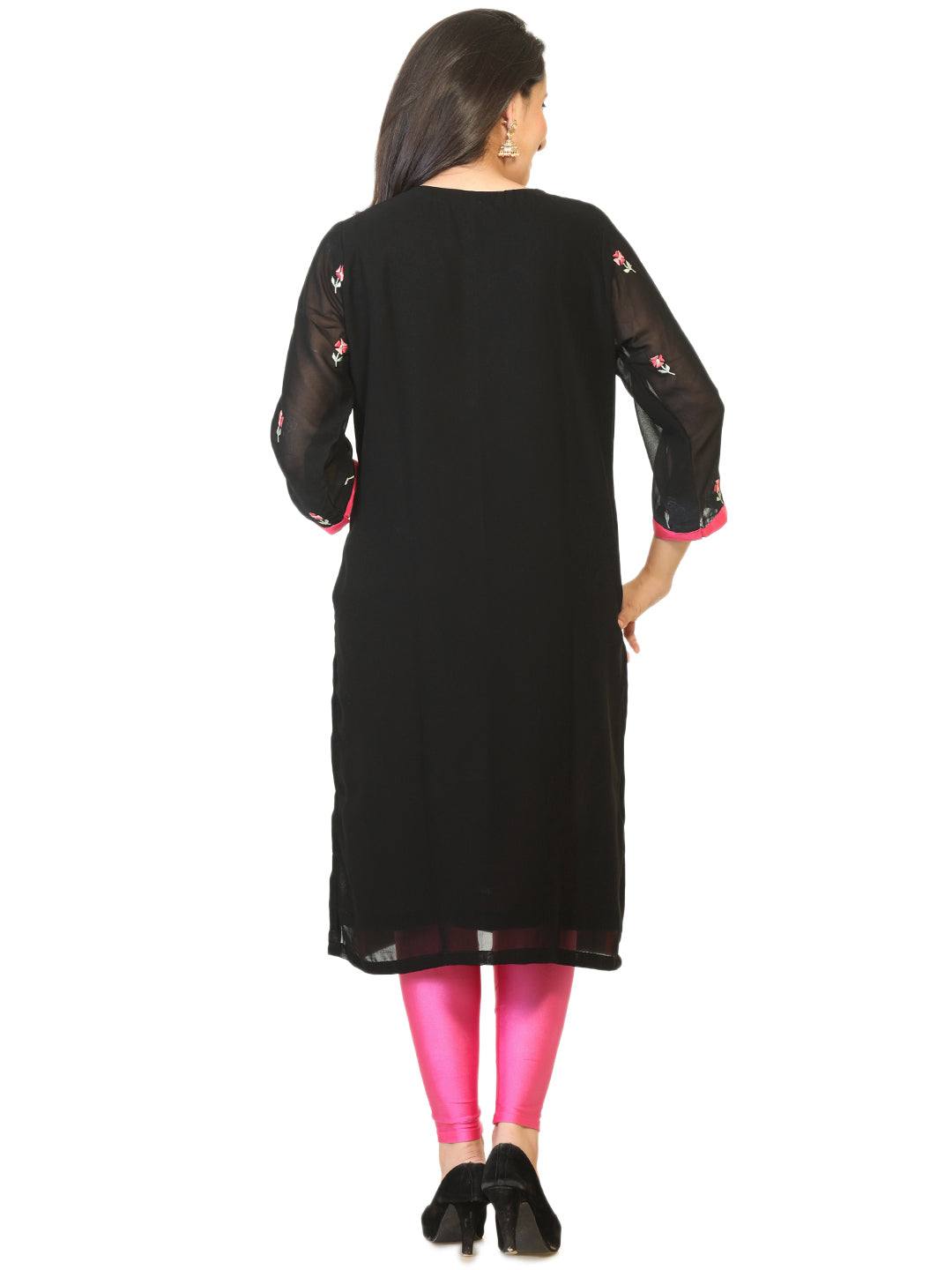 Black Embroidered Georgette Party Wear Tunic / Kurti