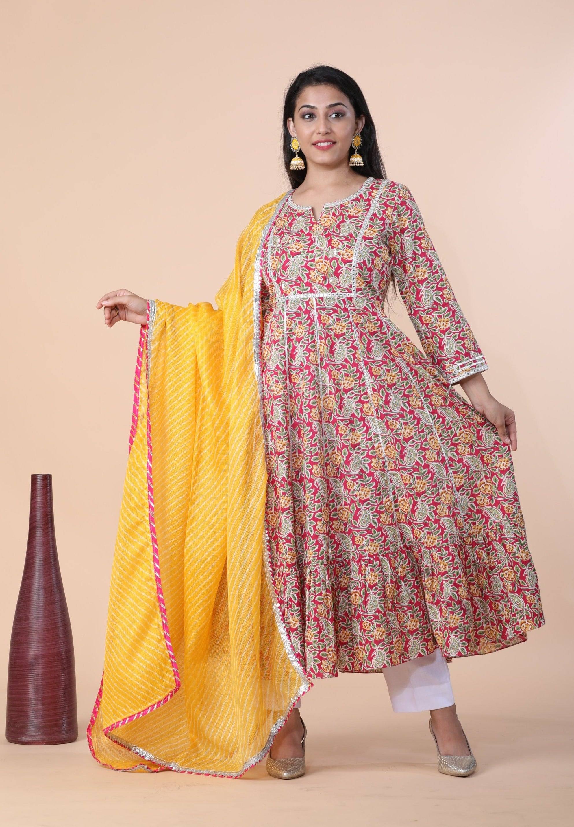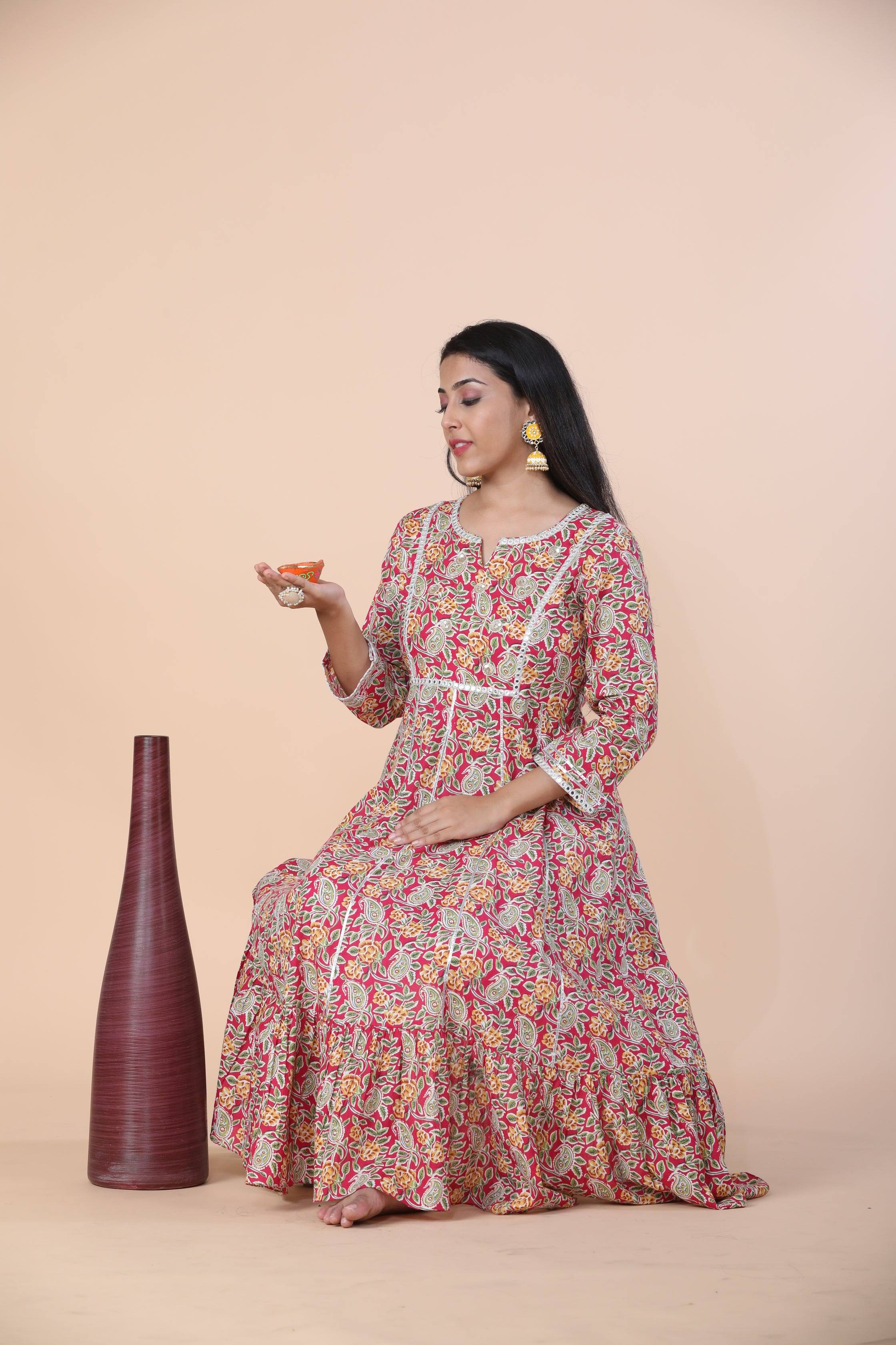 - Work-Print, gotta patti, zari & embroidery detailing.