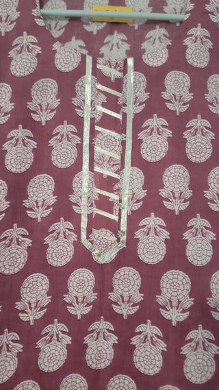Pink Yoke Design, Gotta Patti Work Cotton Kurta with Palazzo & Dupatta