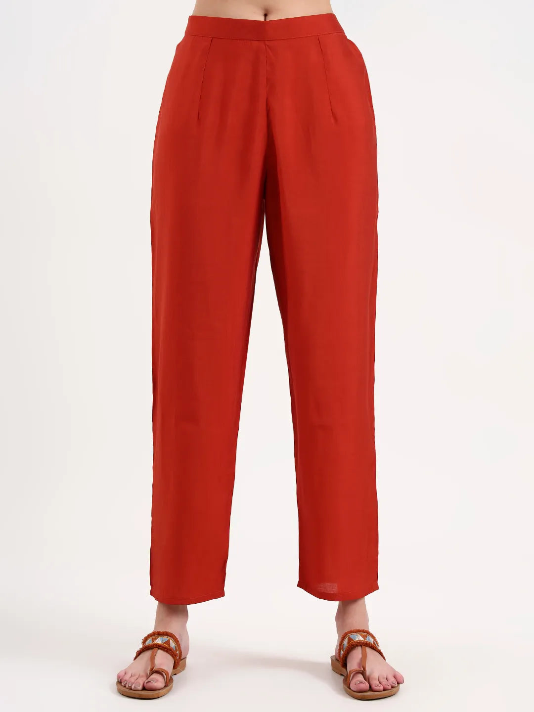 Elevate your ethnic wardrobe with this stunning rust Chanderi silk suit set. The A-line kurta features intricate sequin embroidery and a flattering V-neck with three-quarter sleeves, while the flared trouser offers comfort and style. Complete the look with the coordinating dupatta. Crafted from premium Chanderi silk with a soft lining, this versatile ensemble is perfect for celebrations and special occasions.