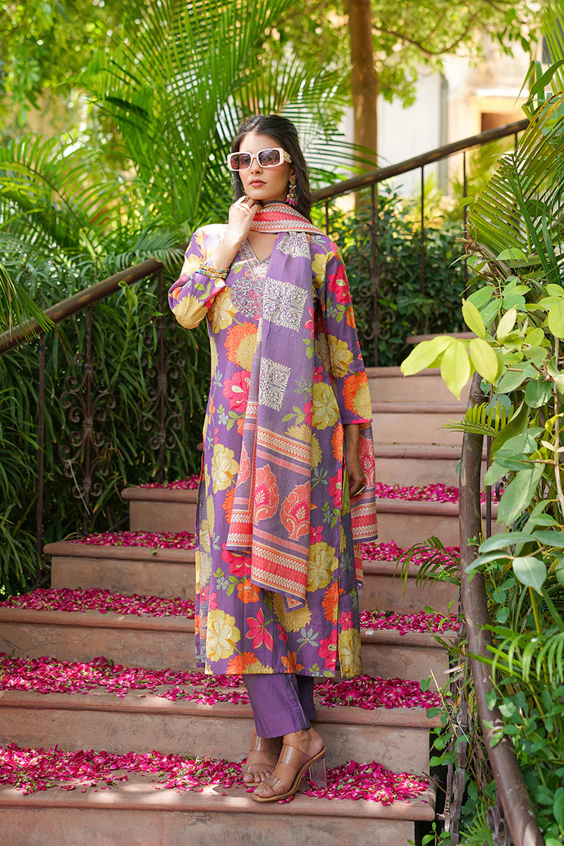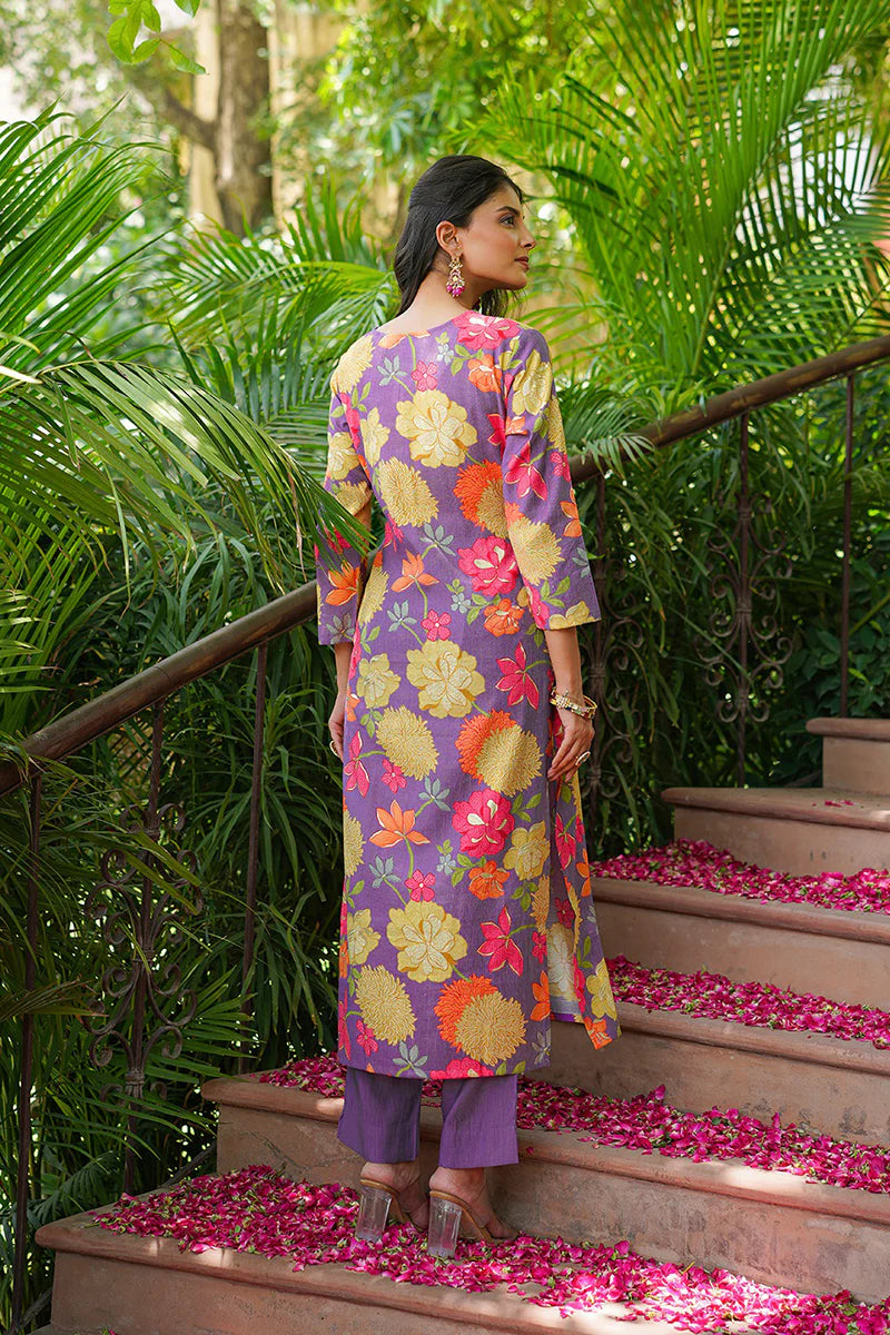 This Purple Viscose Rayon Suit Set features a straight kurta with floral embroidery, comfortable trousers, and a matching dupatta. Made from soft, breathable fabric, it’s ideal for casual wear and festive occasions, offering a stylish and easy-to-wear outfit.