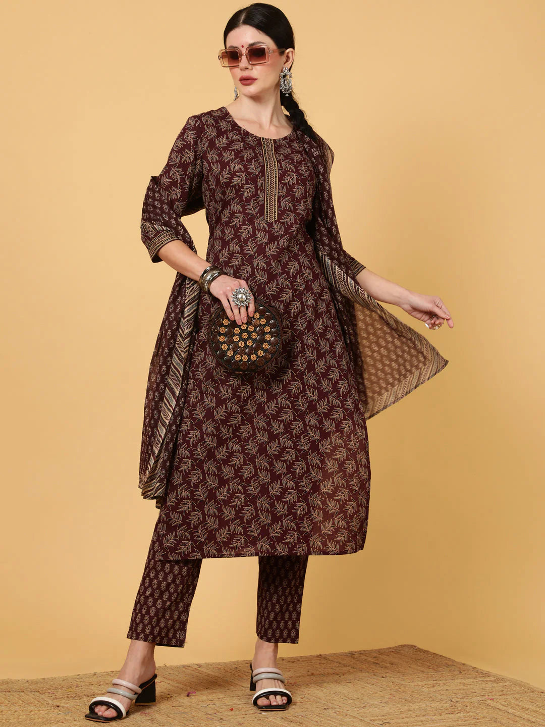 Suit Set Online USA | Wine Viscose Rayon Printed Suit Set with Dupatta – Ria Fashions