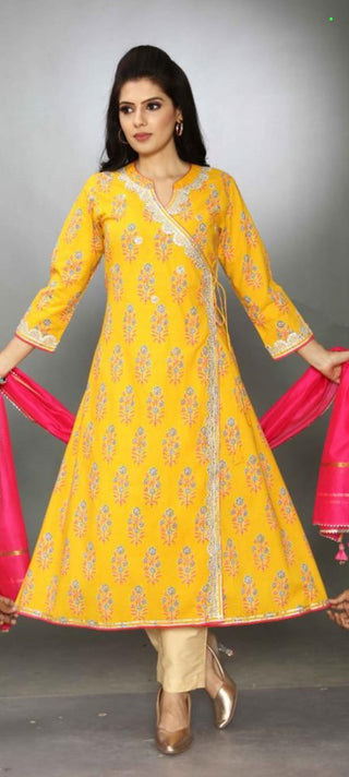 Premium Cotton Floral Print Anarkali Set With Gotta Patti Work And Cotton Dupatta