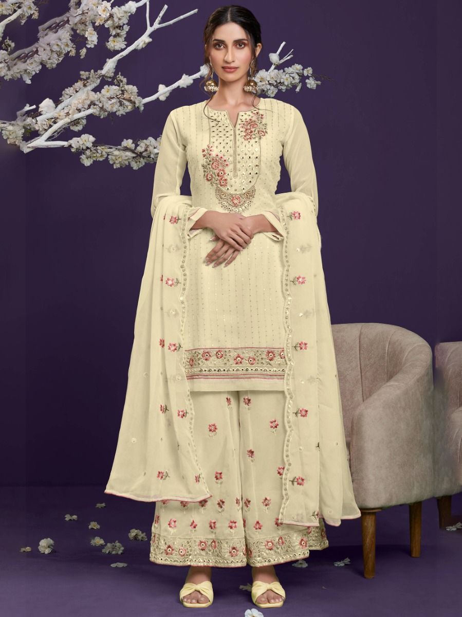 Yellow Georgette with Thread & Sequins Embroidered Sharara Set with Dupatta