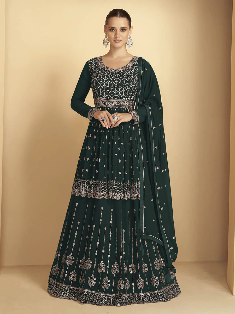 Green Georgette Thread & Sequins Embroidered Sharara Set with Dupatta