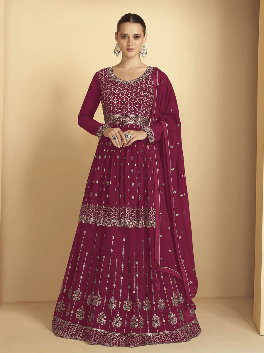 Pink Georgette Embroidery, Thread & Sequins Detailing Sharara Set with Dupatta