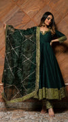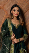 Solid Dark Green Cotton Silk Anarkali Suit Set